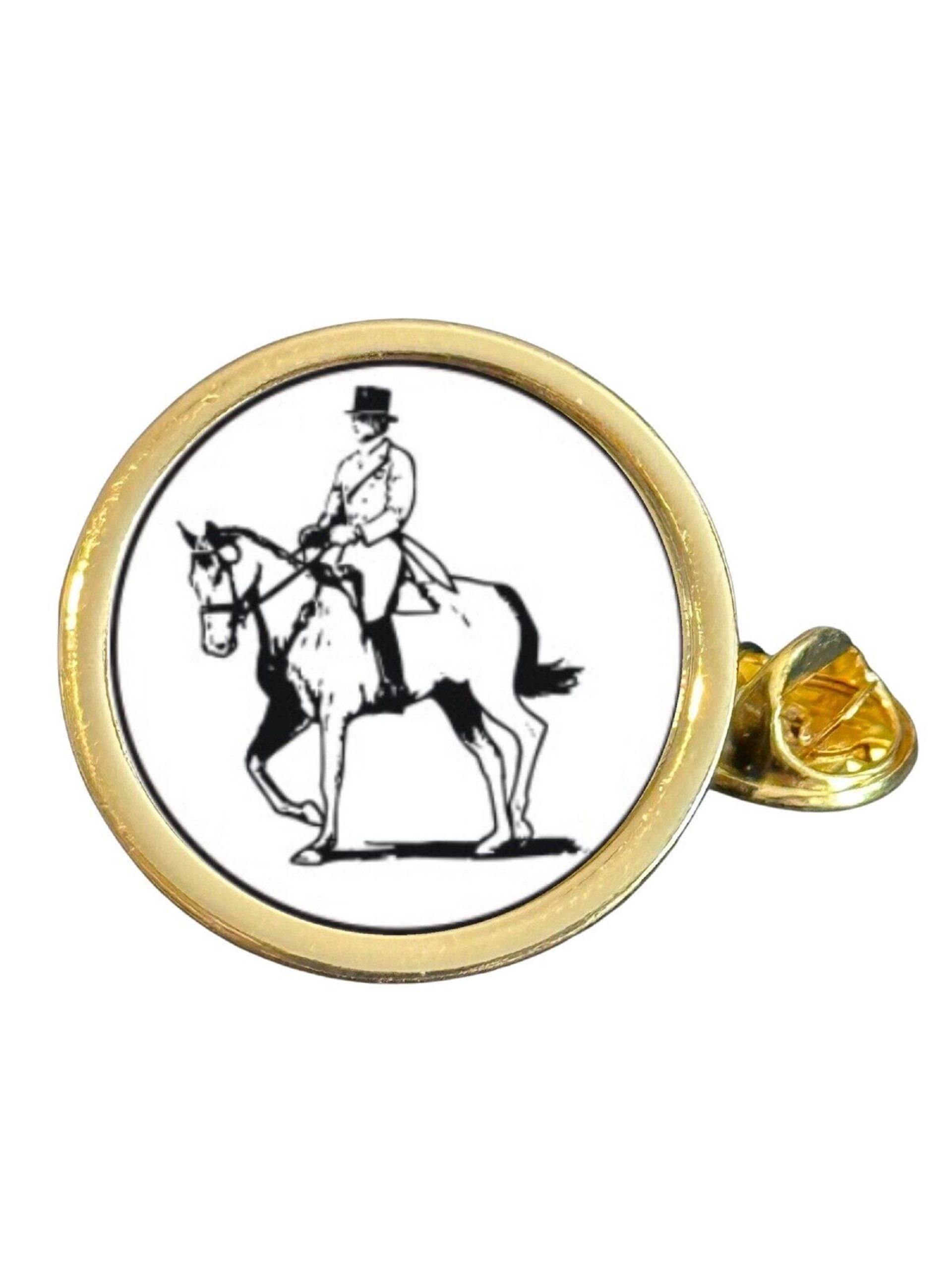 Equestrian Horse Dressage Gold Plated Domed Lapel Pin Badge